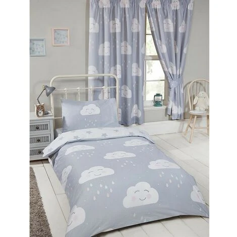 52% Polyester, 48% Cotton. Design: Clouds, Raindrop, Stars. Reversible. Contents: 1 Duvet Cover, Pillowcase. Easy-Care.