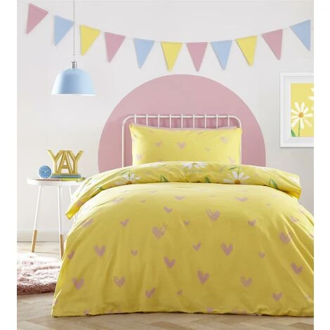Transform your bedroom from dull to dreamy with this vibrant, yellow floral duvet cover set. Featuring a field of happy daisies, this bed linen is adorned with positive statements such as ‘You are Loved’,’ Dream Big’ and ‘Be You’ to ensure you wake up on the right side of the bed. Made from quality polycotton.