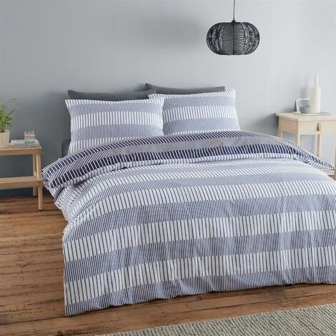 Striking on-trend style, this fully reversible bedlinen features a contemporary linear stripe pattern. Created from easy-care and durable polycotton fabric for everyday use. Contents – Double duvet cover (200x200cm) plus two pillowcases (50x75cm). Material – 52% Polyester 48% Cotton. Care instructions – Machine washable, can be tumble dried. Ethically sourced overseas and made to quality and human-ecological safety standards, in accordance with MADE IN GREEN by OEKO-TEX®. Catherine Lansfield is renowned for style and quality – designed and developed in Great Britain.