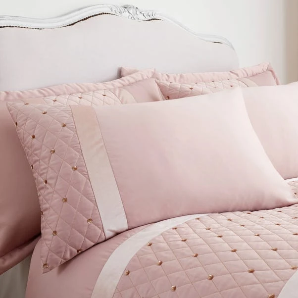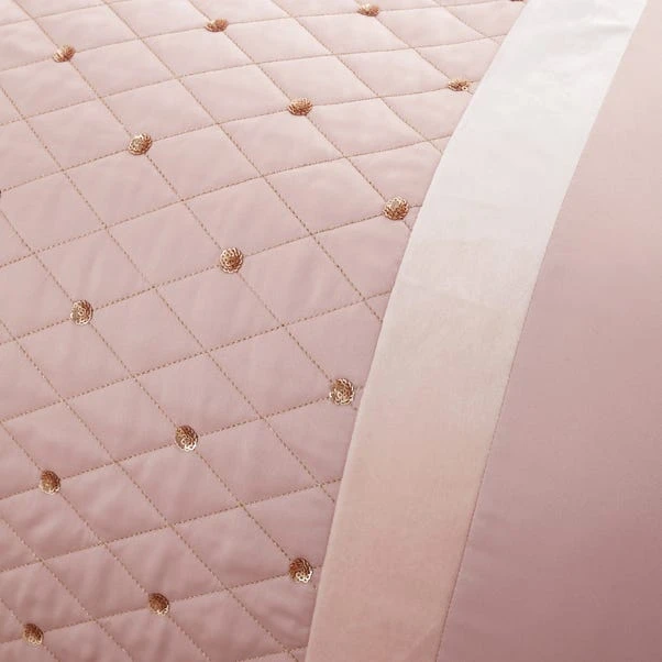 Elegant and indefinitely opulent, the Sequin Blush bed-linen by Catherine Lansfield adds both style and quality to your home. Luxuriously quilted panels of matt satin, sparkling sequins and velvet borders elegantly embellish this beautiful bed-linen, creating a luscious master bedroom look. This set is machine washable, providing ease of use.
