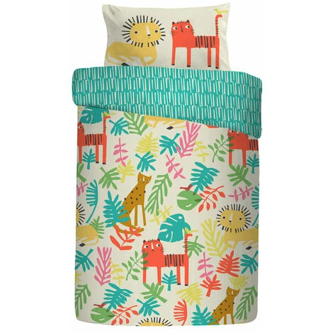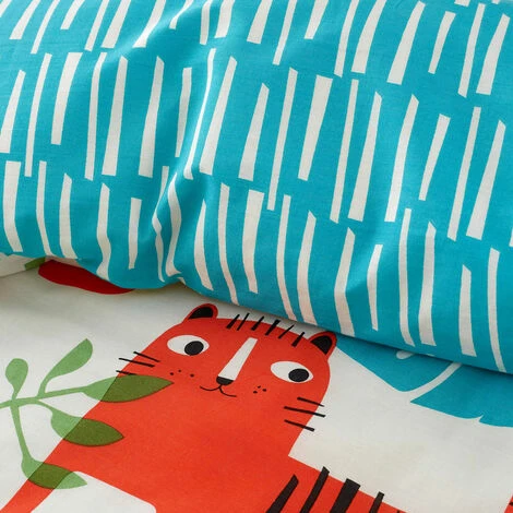 Featuring quirky jungle cat illustrations, the Tiger Tropics bedding is