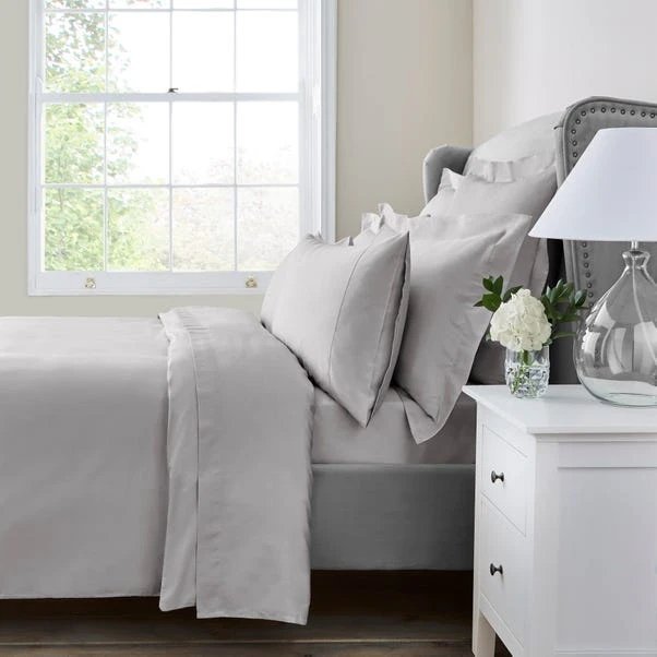 Made from sumptuously soft 100% cotton sateen with a 300 thread count providing opulent handle, this duvet cover is designed in an elegant silver colourway and is machine washable for easy care. This duvet cover comes with a premium 10 year guarantee, in a variety of sizes and a has wide range of coordinating items available.