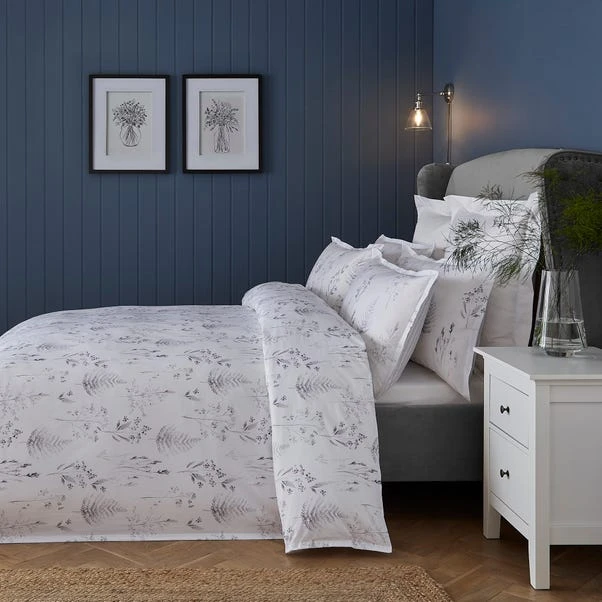 Our Dorma Purity Botanical duvet cover and pillowcase set features a hand painted floral design and delicate striped reverse. The 300 thread count cotton percale is light for a summery night and the set is finished with a mini Oxford edge. A zipper fastening has been fitted which provides you with easy duvet removal. Coordinating pillowcases, curtains and cushion are available.
