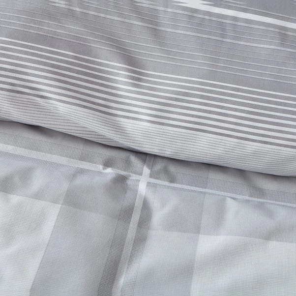 Create two looks in one with this ombre check front and stripe reverse duvet cover set with a contemporary urban design. It easily sits within many bedrooms, providing a relaxed and casual feel with finishing touch accessories available. Machine washable for easy care and comes in an array of sizes.