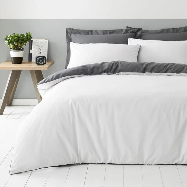 Boasting a stunning grey colourway and piped detailing, this duvet cover and pillowcase set is perfect for styling up your bedroom. With a reversible design, you can easily change the colour. Made from 100% cotton this bedding set is soft, durable and machine washable. This duvet cover set is available in a range of colours and sizes and additional matching pillowcases are also available.