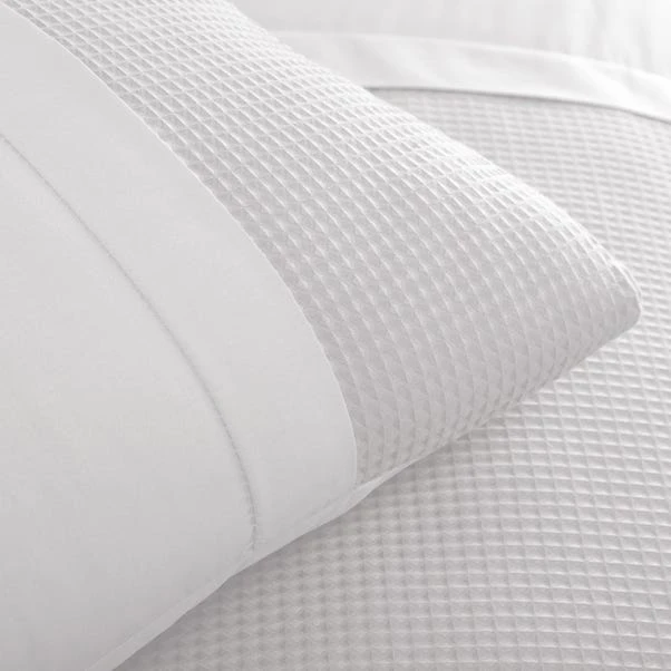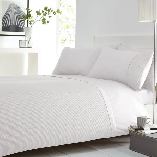 Crafted with a beautiful textured waffle fabric, this white duvet cover and pillowcase set has a sophisticated woven design and is available in a range of sizes. The easy care polycotton material has been finished with a new improved method to ensure a soft feel and consistent look wash after wash.