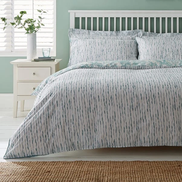 This reversible duvet and pillowcase set features a teal wave print on one side and a teal striped pattern on the other. Available in a choice of sizes, this set is made from a comfortable, yet durable blend of cotton and polyester.