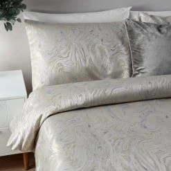 Paoletti Marble Oyester Duvet Cover & Pillowcase Set
