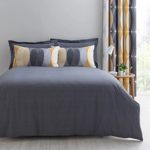 With a trendy oval print design in a striking ochre and natural colourway, this duvet cover set is crafted from a practical and durable blend of polycotton or cotton requiring minimal ironing for easy care. Available in all sizes, the Elijah duvet cover set comes complete with pillowcase(s) and has coordinating accessories available.