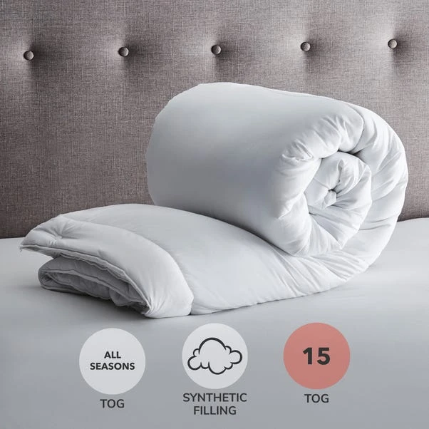 For year round comfort, featuring a 10.5 tog duvet for cooler climates and a 4.5 tog for warmer nights, this expertly designed Fogarty duvet can be combined to make a 15 tog duvet for the coldest nights. Crafted with a polyester microfibre cover and a polyester hollowfibre filling, this duvet is machine washable.