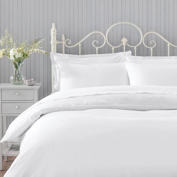 Perfect for any room style, this duvet cover and pillowcase set features a crisp white colourway. Crafted from a 200 thread count, 100% cotton material, this duvet cover set is easy to care for and soft to touch while being fully machine washable. The cover has been finished with a button fastening that helps secure the cover around the duvet while in use.