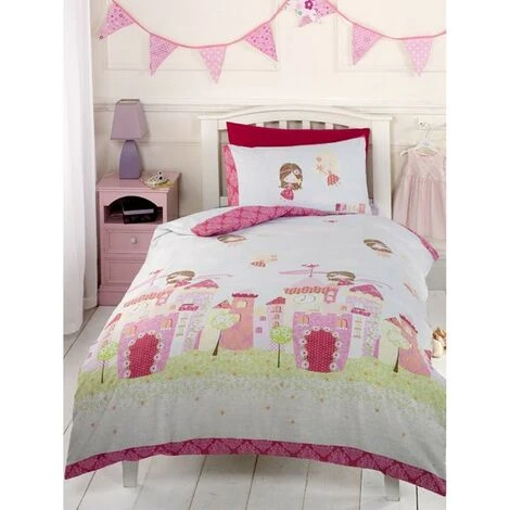 52% Polyester, 48% Cotton. Contents: Duvet Cover, Pillowcase. Design: Castle, Fairy, Floral.