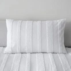 Dunelm Ezra White Tufted Luxe 100% Cotton Duvet Cover And Pillowcase Set