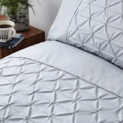 Dunelm Leo Pintuck 100% Cotton Grey Duvet Cover And Pillowcase Set