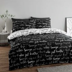 Catherine Lansfield Script Duvet Cover Set Black & White Single Bedding Set
