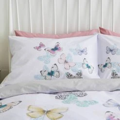 Catherine Lansfield Scatter Butterfly Reversible Easy Care Duvet Cover Set, Grey, Double
