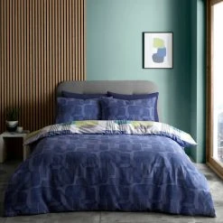 Catherine Lansfield Layered Geo Print Easy Care Reversible Duvet Cover Set, Navy/Green, Single