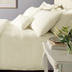 Catherine Lansfield Windsor Ladder Stitch Embroiderey Polycotton Percale Duvet Cover Set, Cream, Single