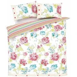 Catherine Lansfield Stab Stitch Floral Reversible Duvet Cover Set, Multi, Double