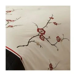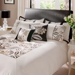 Catherine Lansfield Shrewsbury Floral Embroiderey Embellishment Matt Satin Duvet Cover Set, Black/Ivory, Single