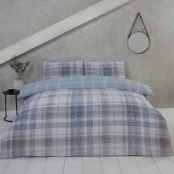 Jasper Check Blue Double Duvet Cover Set Bedding Bed Quilt Set