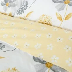 HOMESCAPES Lemon, White And Grey Floral Duvet Cover Set, Double